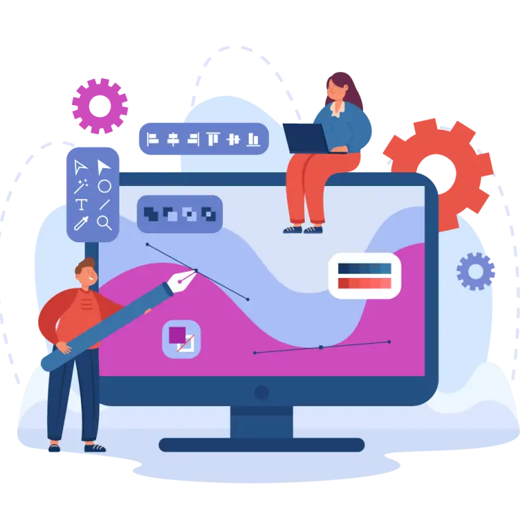 ثم ينتقل الفريق المختص إلى عملية التصميم والتطوير بناءً على التخطيط السابق ويتم فيها اختيار الألوان والخطوط المناسبة وتنظيم العناصر المرئية والرسومات والنصوص بشكل جذاب ومنسق